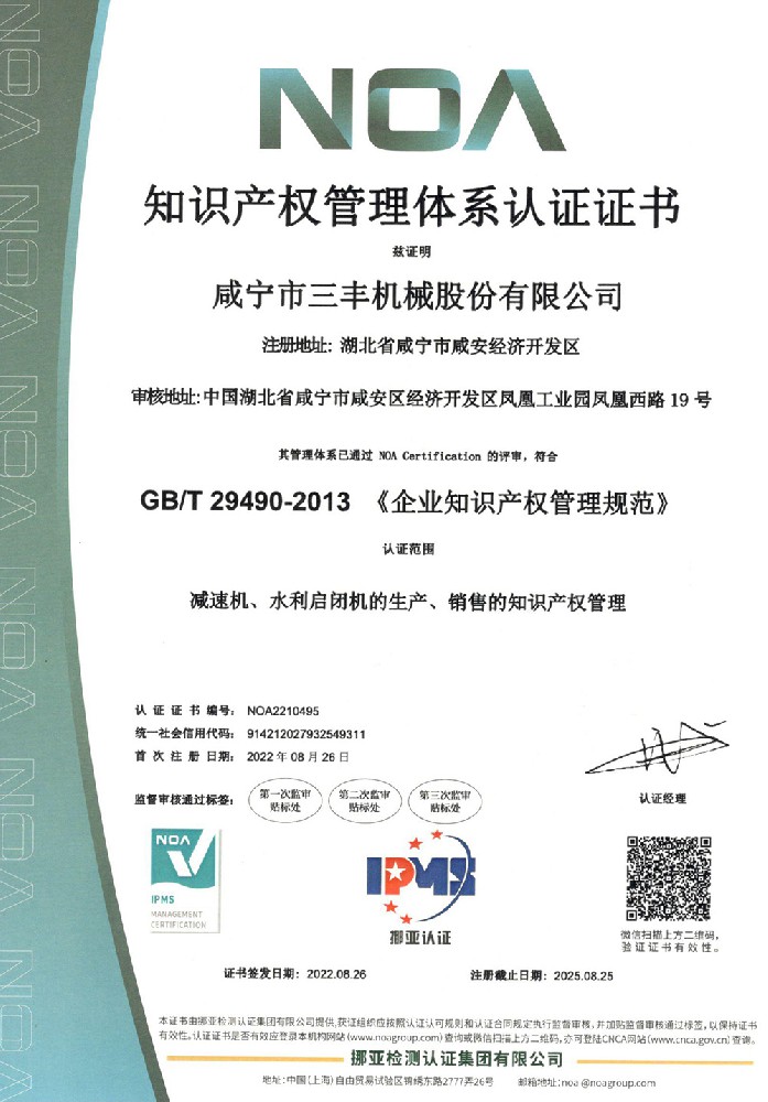 知識產(chǎn)權(quán)管理體系認(rèn)證證書